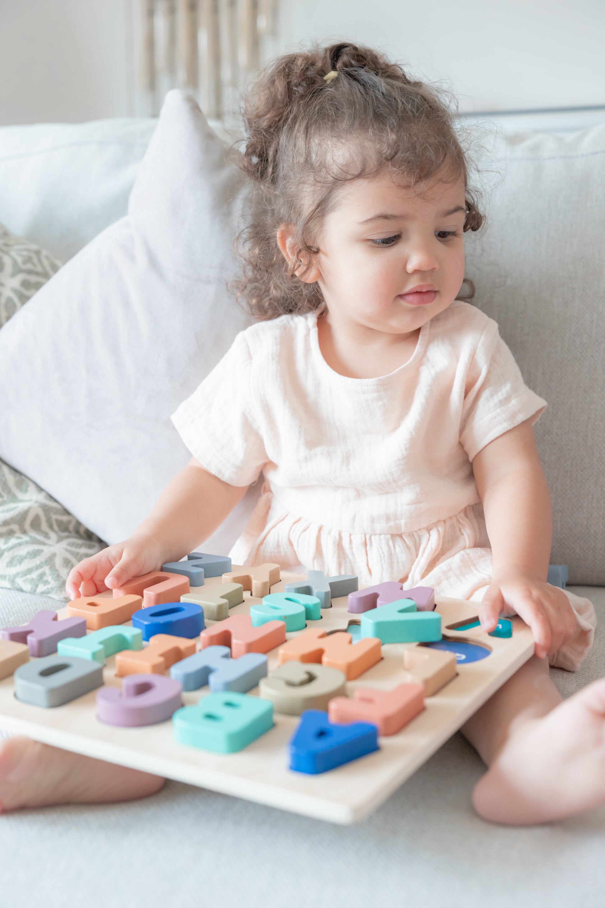 Our wooden ABC puzzle is a great way to introduce your little one to the English alphabet and the slots for the pieces on the puzzle board are deep enough for the pieces to slide in. The stand-alone letters let them practice their ABC’s as well as form simple words.