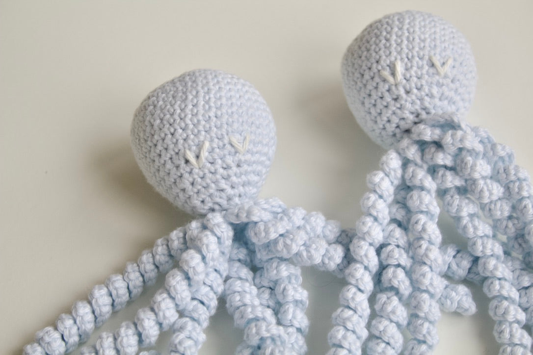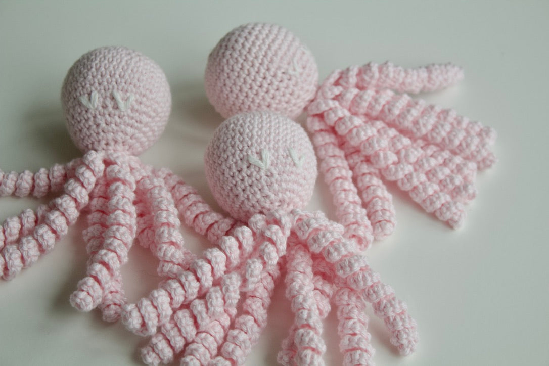 A few years ago, a father asked for a crocheted octopus for his baby to comfort her whilst in hospital. The hospital staff subsequently observed that premature babies grasped the curly tentacles of the octopus instead of pulling at their tubes. The theory is that the curly tentacles mimic the umbilical cord and comfort the baby. What an amazing thought!