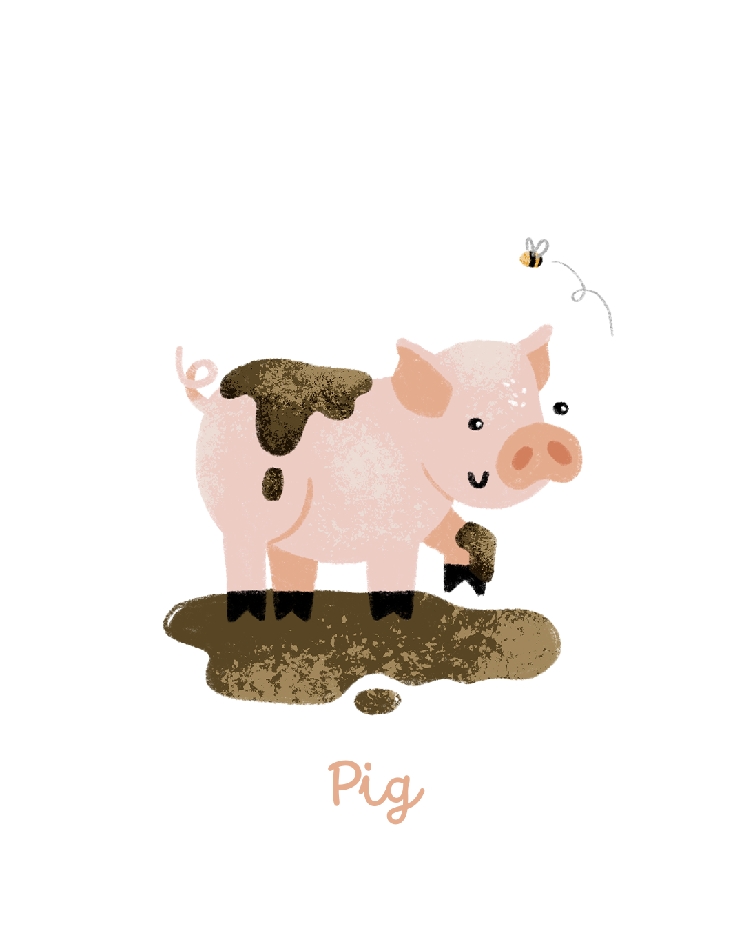Our Farm Animals Print is a delightful addition to your little one's nursery or toddler’s bedroom. Featuring charming illustrations of classic farmyard friends - from cows and pigs to horses, ducks, and more - this playful print brings a touch of country life indoors.