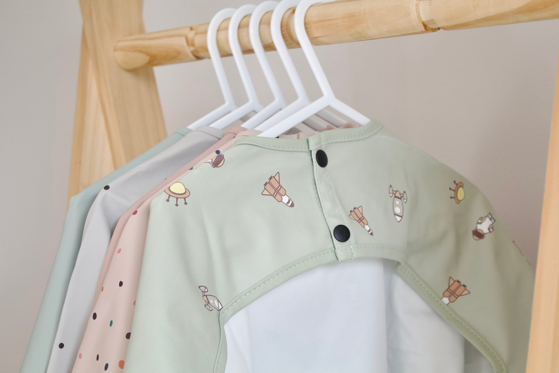 This long-sleeved, waterproof feeding apron is ideal for feeding and messy play. It boasts a pocket, which is designed to contain messes and gives your little one stylish full upper-body protection. It wipes clean in seconds and has a popper clasp to enable swift putting on and taking off.