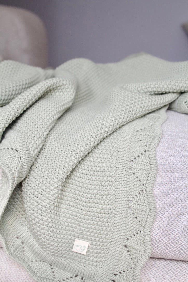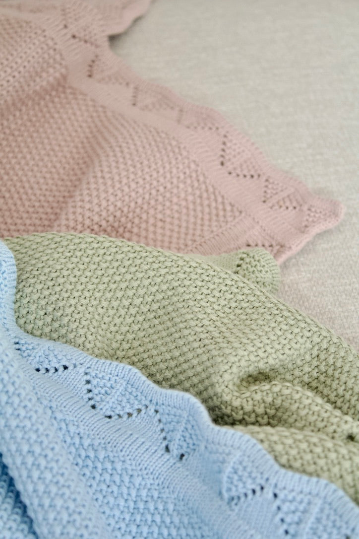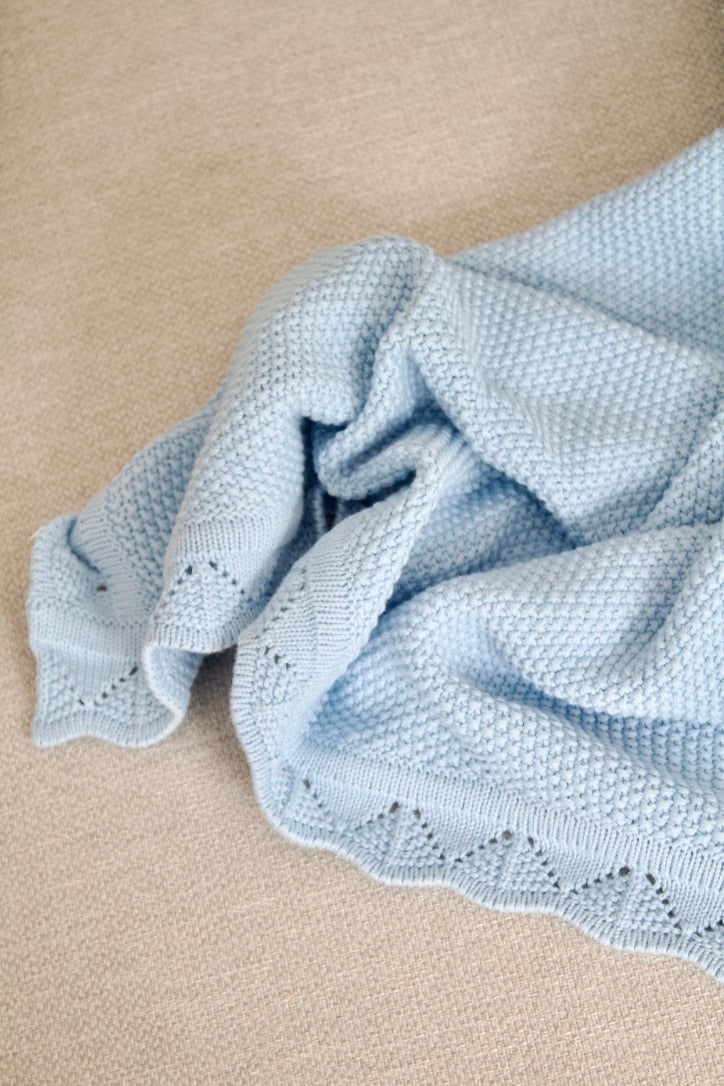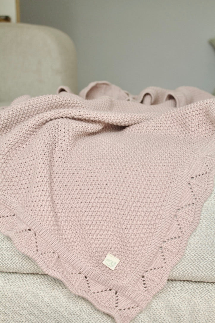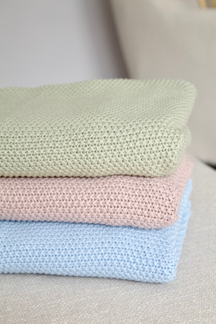 Snuggle your little one in our large, hand-knitted cotton baby blanket.