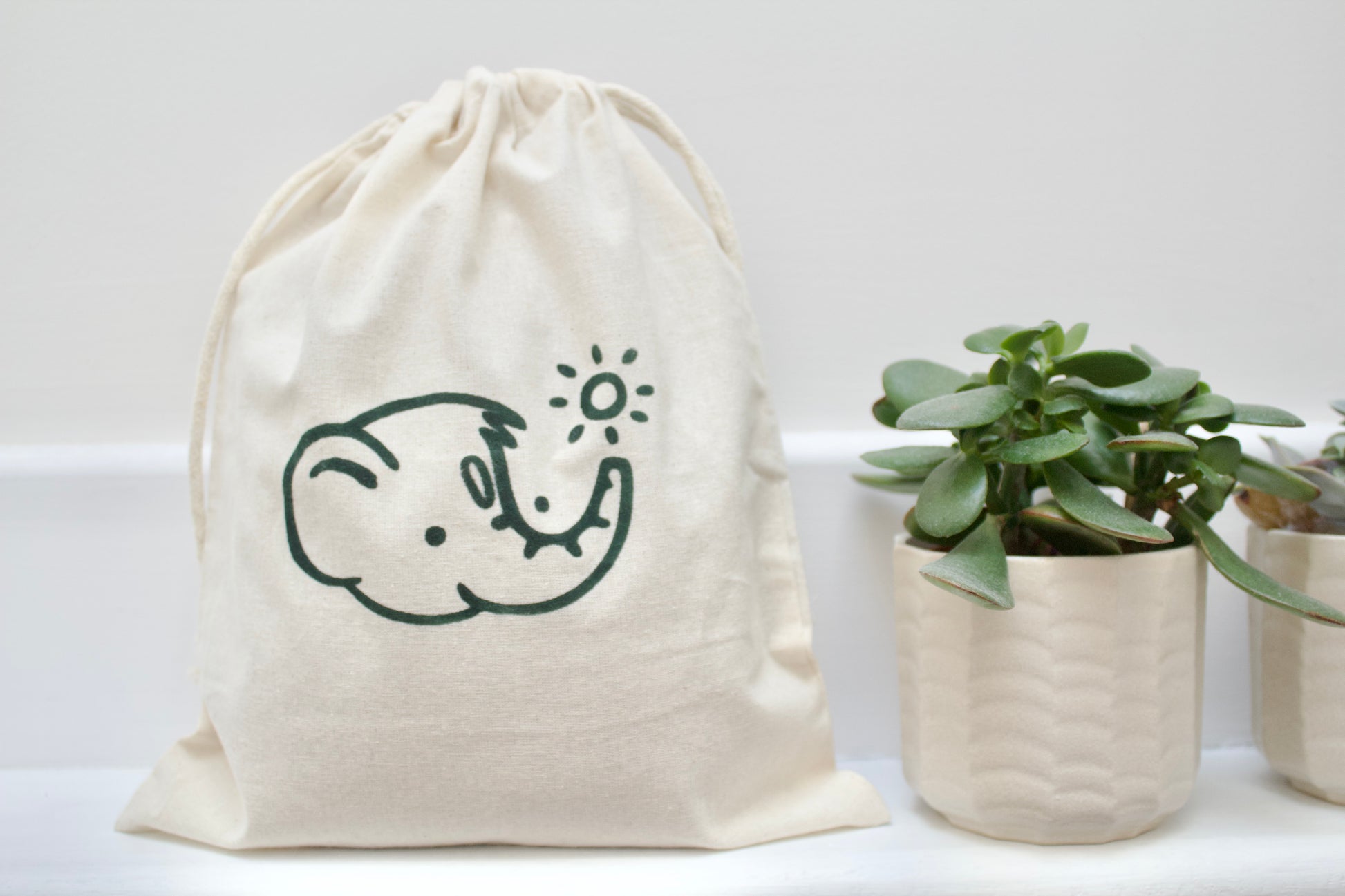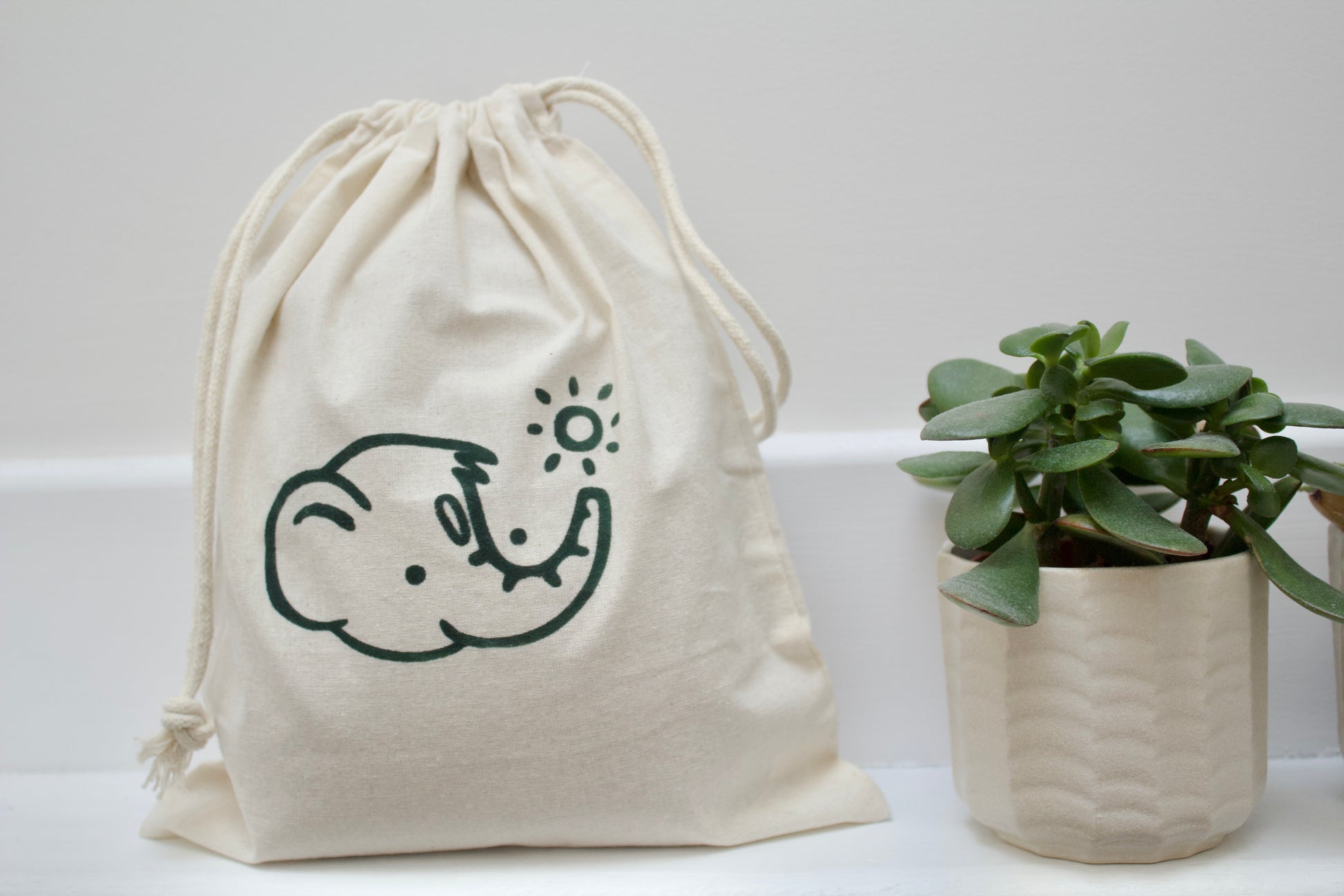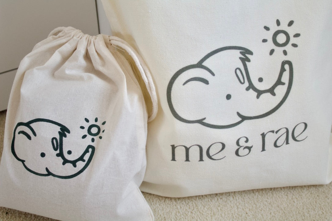 Keep your mom and baby things organised with our stylish, eco-friendly cotton canvas drawstring bag. Exclusive to Me and Rae!