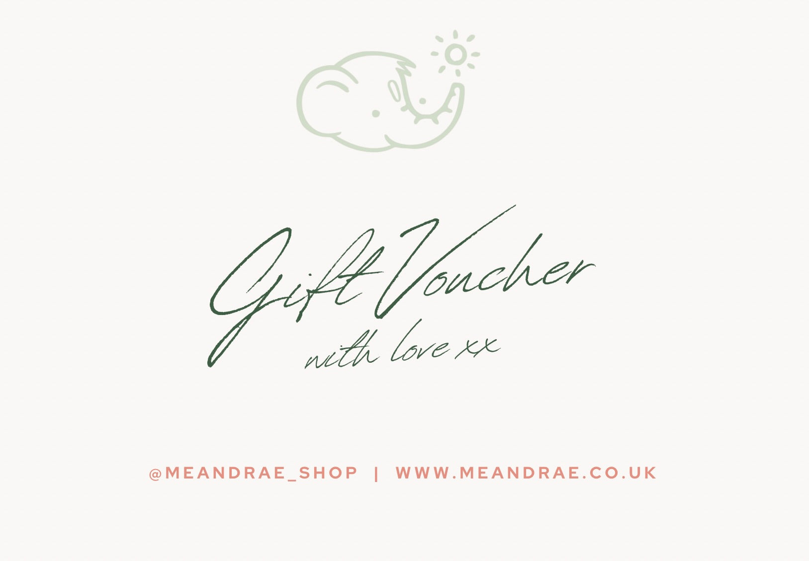 Give the gift of Me and Rae with one of our e-gift vouchers. These are valid for all items in our store for a period of one year.