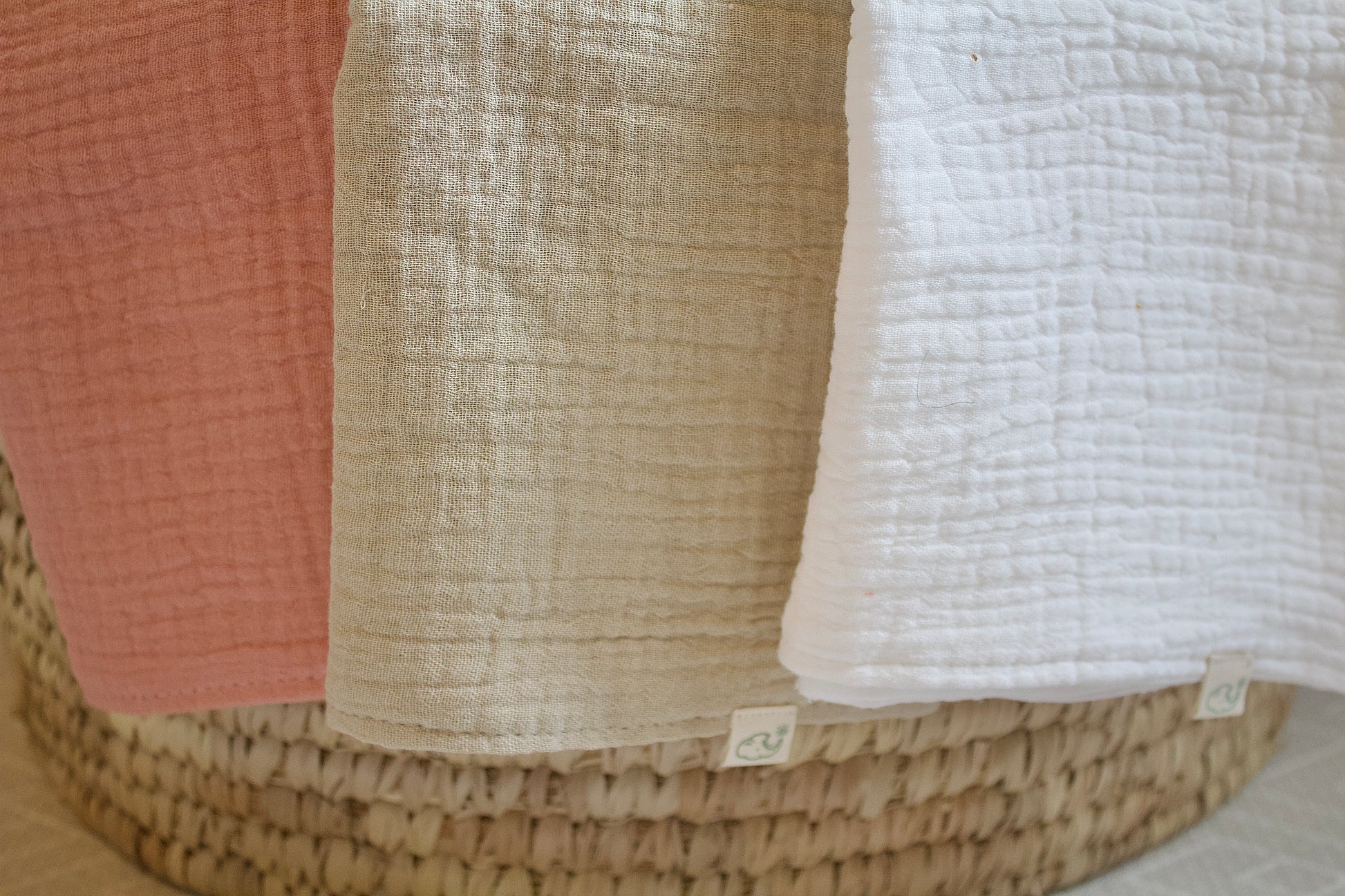 Our layered muslin burp cloths are made from 100% organic cotton that gets softer with every wash.