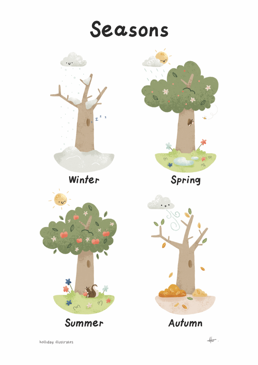 Watch as your little one embraces the magic of the seasons and embarks on a journey of learning and wonder. Bring this enchanting educational print into your child's world today!