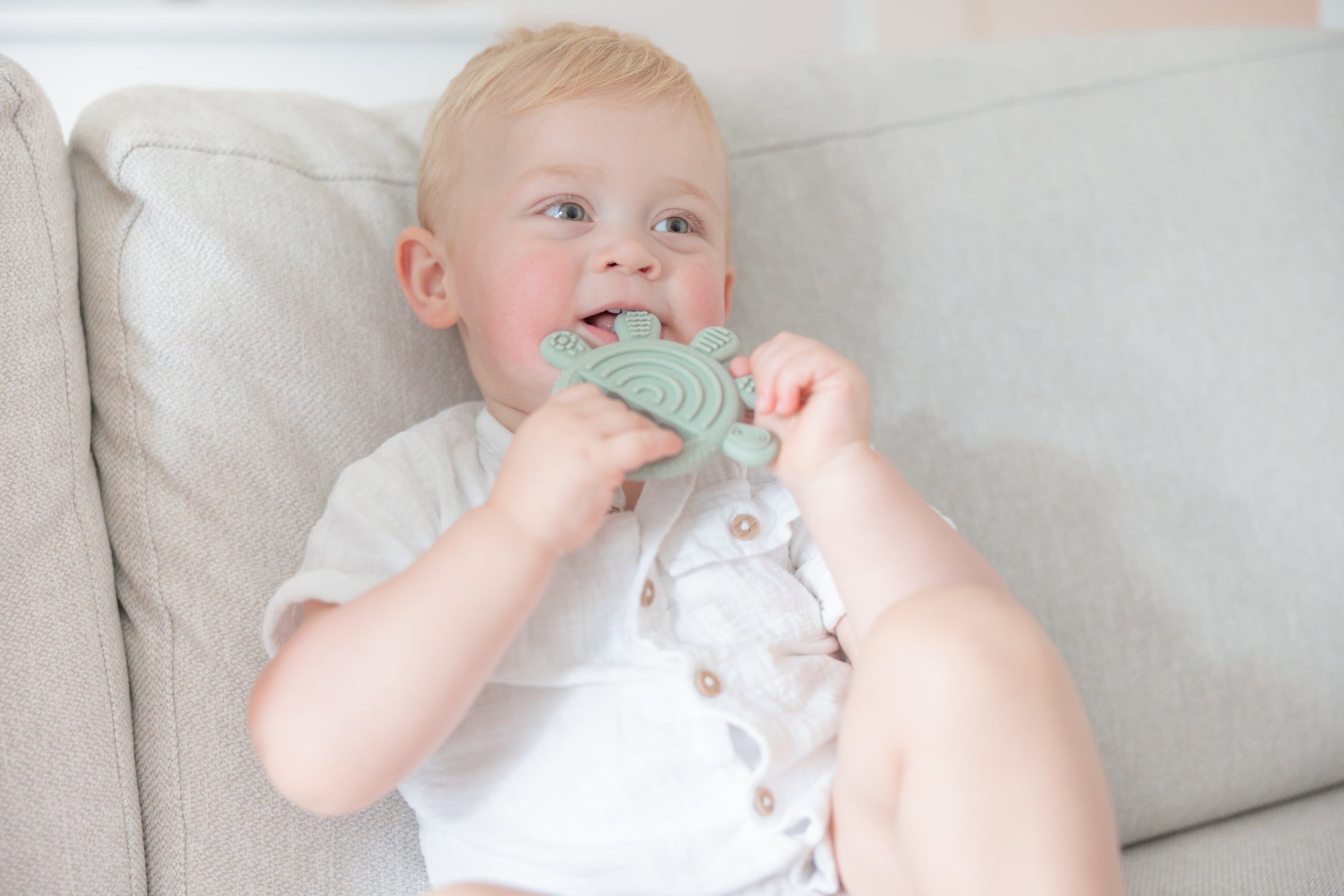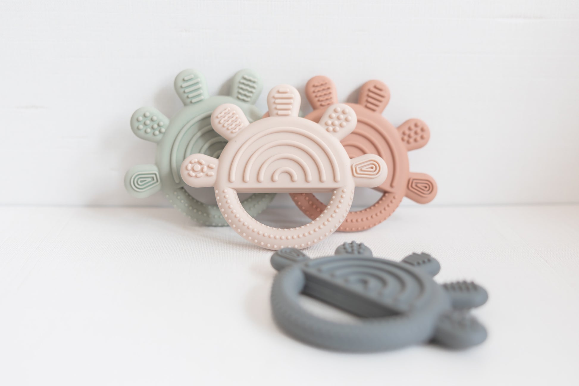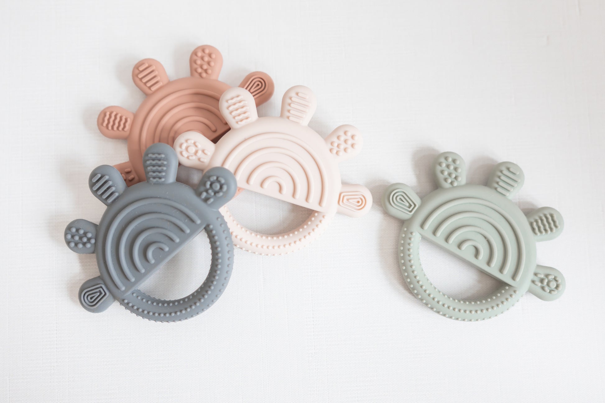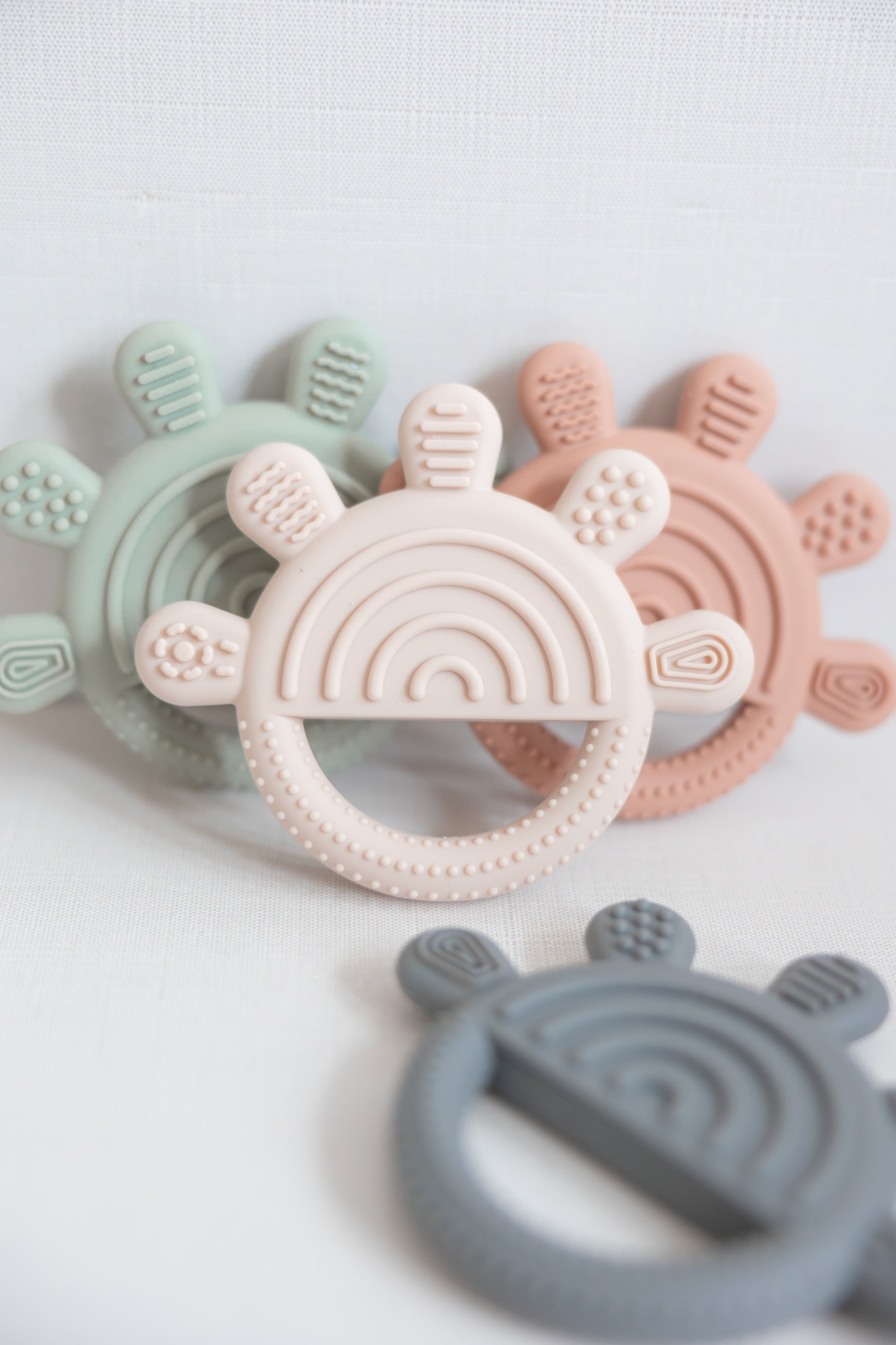 Our Silicone Sun Teething Ring is flexible, smooth and, most important of all, soft. It not only soothes sore and tender gums, it offers a multi-sensory experience with different tactile sensations as your little ones will bend, grasp, twist, bend, chew and shake!
