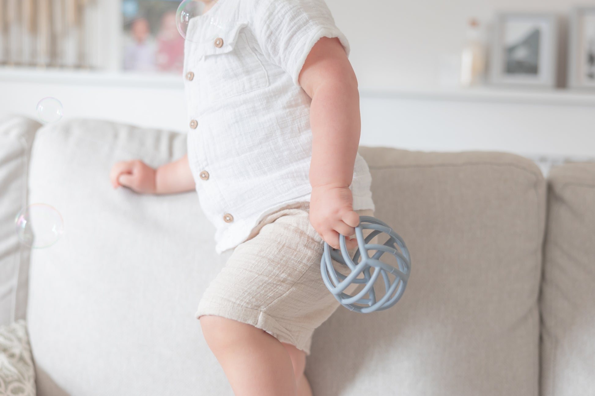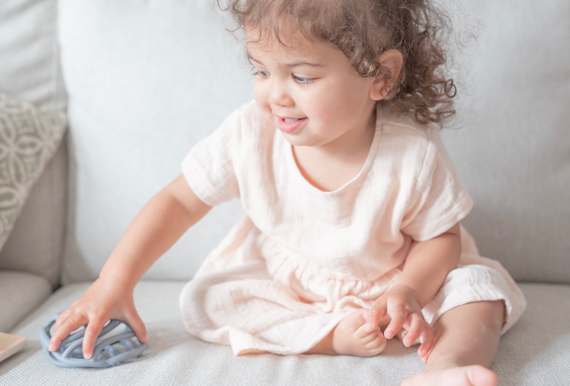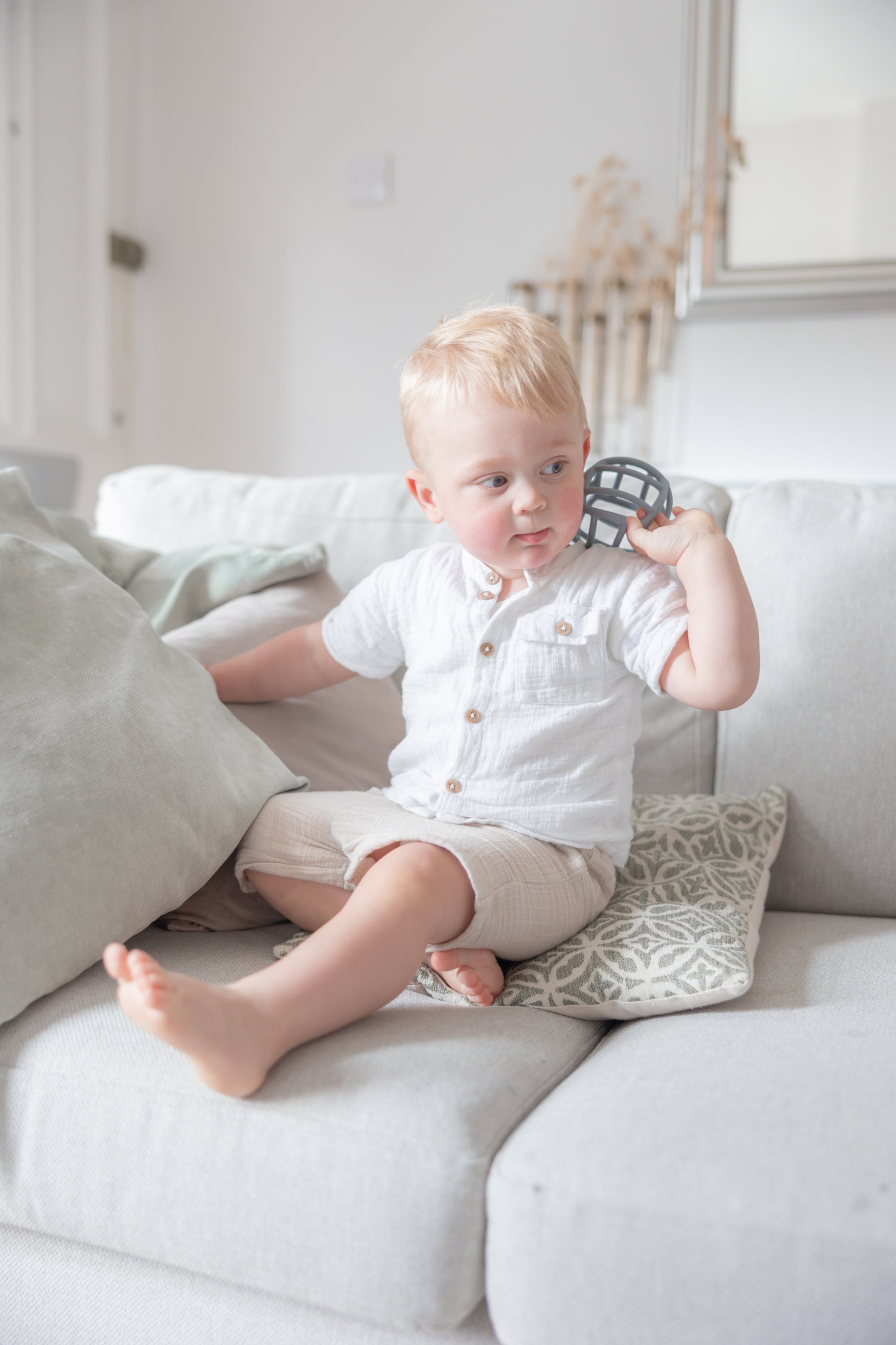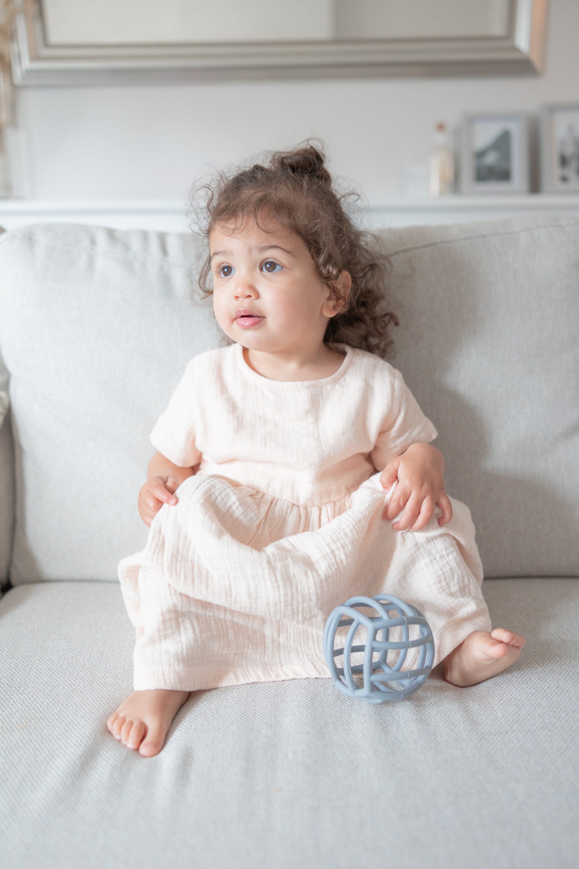 Our Teether Ball is perfectly sized for little hands, promoting fine motor skills and hand-eye coordination as your baby explores its shape and texture.