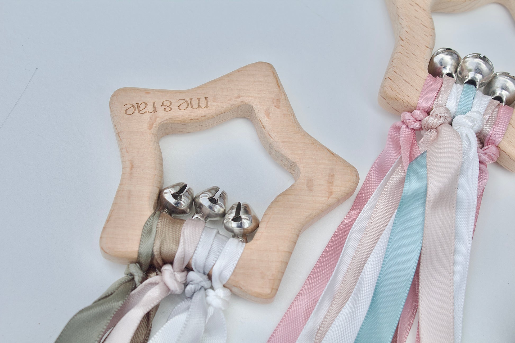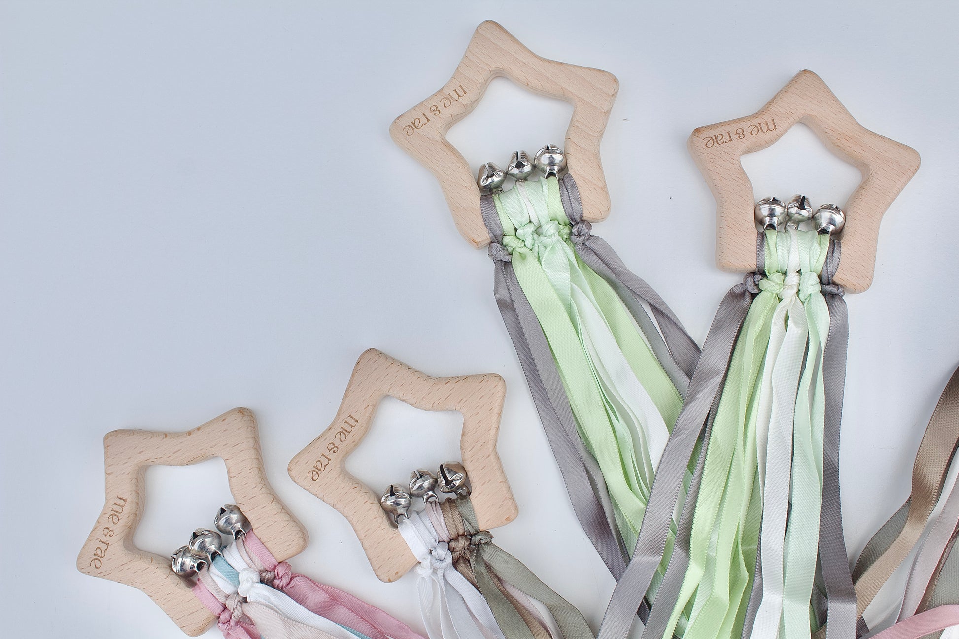 Handmade with love from untreated wood and the finest silky-soft satin ribbons, our star rattles encourage focus and stimulate sensory development.